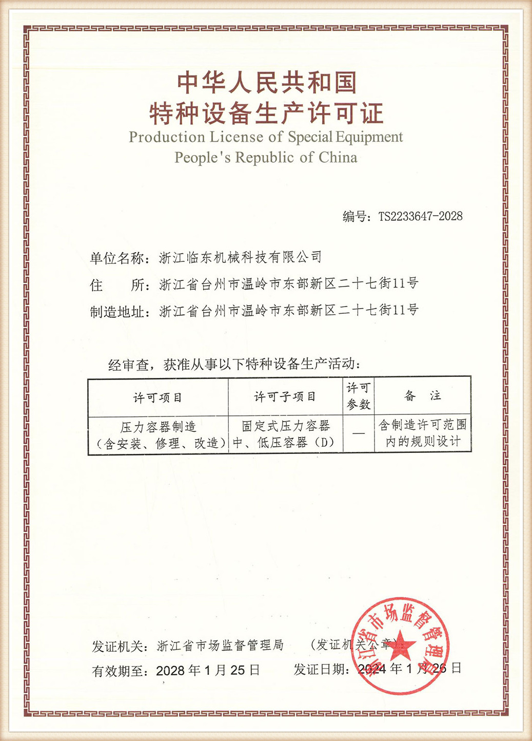 公司前身是位于浙江省临海市头门港新区北洋九路8号的“浙江KK体育压力容器制造有限公司”,因2016年头门港开发区规划调整,原址被列为环境功能保护区,公司于2017年启动搬迁。期间浙江KK体育压力容器制造有限公司参与起草了行业标准NB/T47052-2016《简单压力容器》及浙江制造团体标准T/ZZB 0584-2018《简单压力容器 储气罐》(第一起草单位),简单压力容器KK体育·产品通过了浙江制造品字标认证。